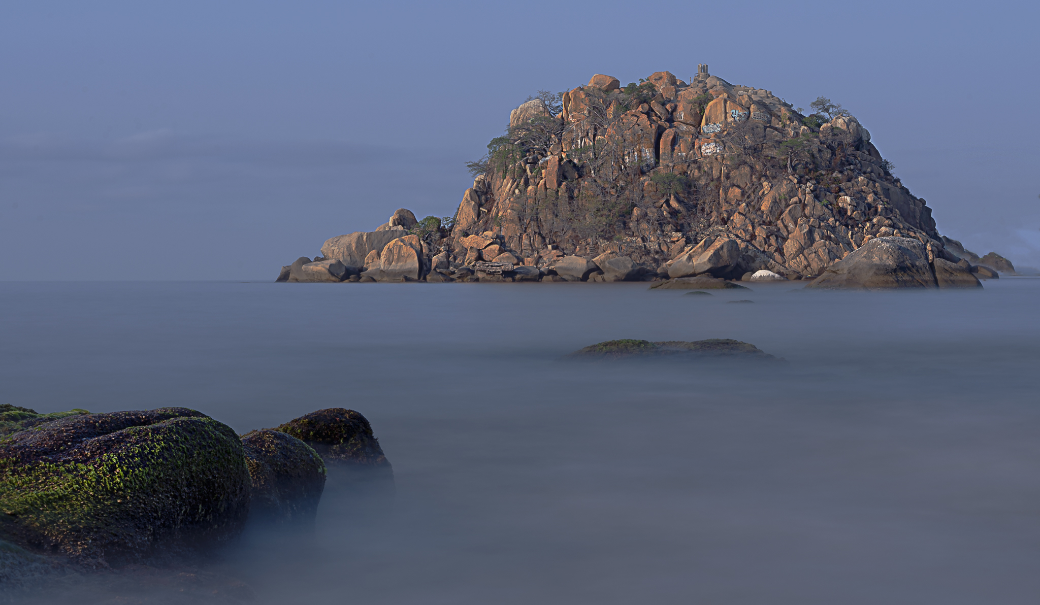 Objetivo: 24mm con apertura a F8 para lograr nitidez aceptable en la roca del primer plano y el islote del fondo